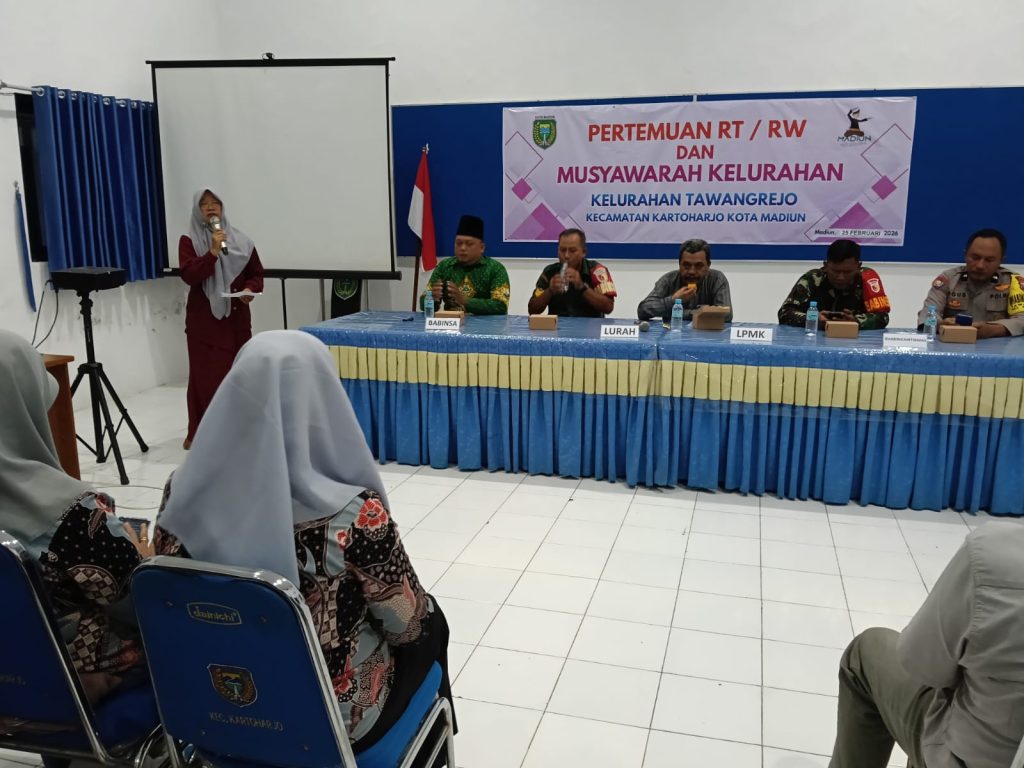 Berita Pertemuan RT/RW dan Musyawarah Kelurahan Tawangrejo Kecamatan Kartoharjo Kota Madiun – Rabu, 25 Februari 2026 Pukul 20.00 WIB s.d. Selesai Februari 26, 2026